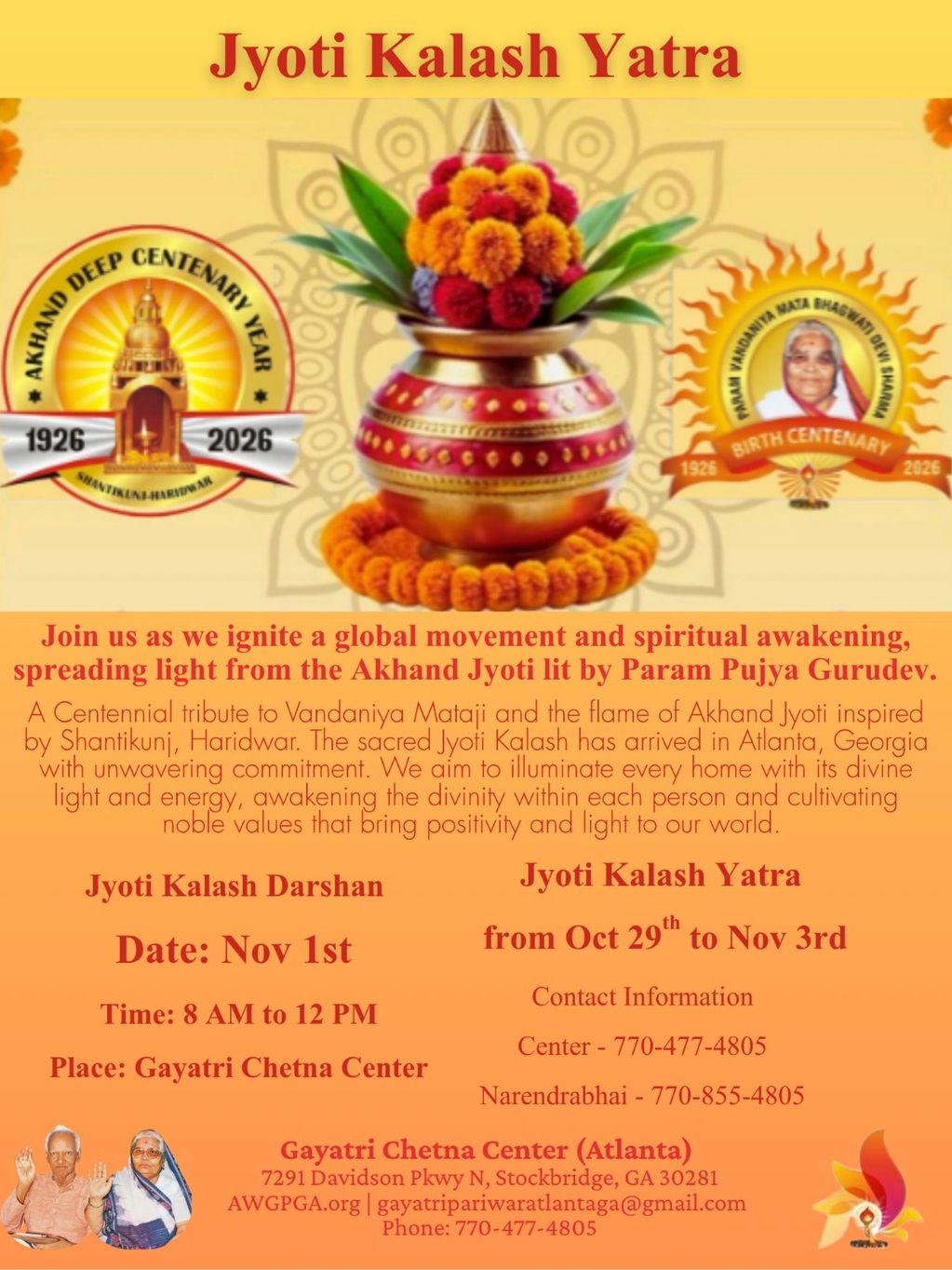 Darshan Time - Nov 1st @ 8:00 AM - 12:00 PM at GCC Atlanta